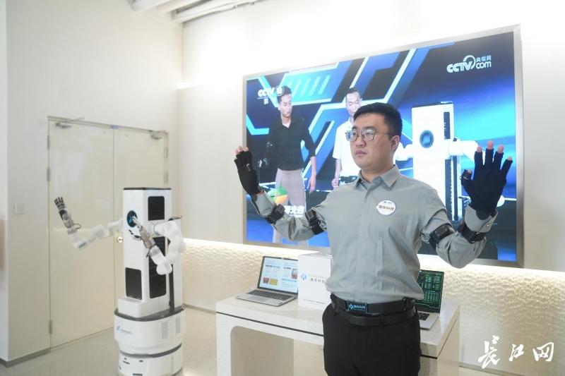 元生代2025创新分享会现场,武汉灏存科技有限公司工程师操作“机械手”。记者彭年 摄