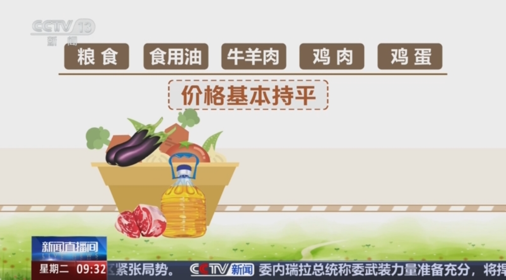 商务部商务大数据显示,元旦前夕,全国生活必需品市场供应充足,价格总体平稳。截至目前,全国200家大型农副产品批发市场水果、鸡蛋、食用油库存量比月初分别增加4.9%、3.2%和1.2%。粮食、食用油、牛羊肉、鸡肉、鸡蛋价格基本持平,蔬菜、水果价格略有上涨。