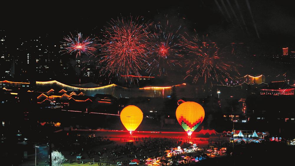 2025年12月31日,昆明市多个地标举行跨年庆典。在南屏步行街中心广场,本土乐队带来了一场精彩的跨年音乐会;东风广场上,免费的国潮民乐和歌舞跨年音乐会吸引市民驻足观看;融创滇池后海连续两晚推出超长烟花秀和戏剧狂欢;南亚风情第壹城“壹起摇摆”跨年音乐会、灯光秀轮番登场,喜迎新年。(云南日报 记者高吴双 黄兴能 摄)