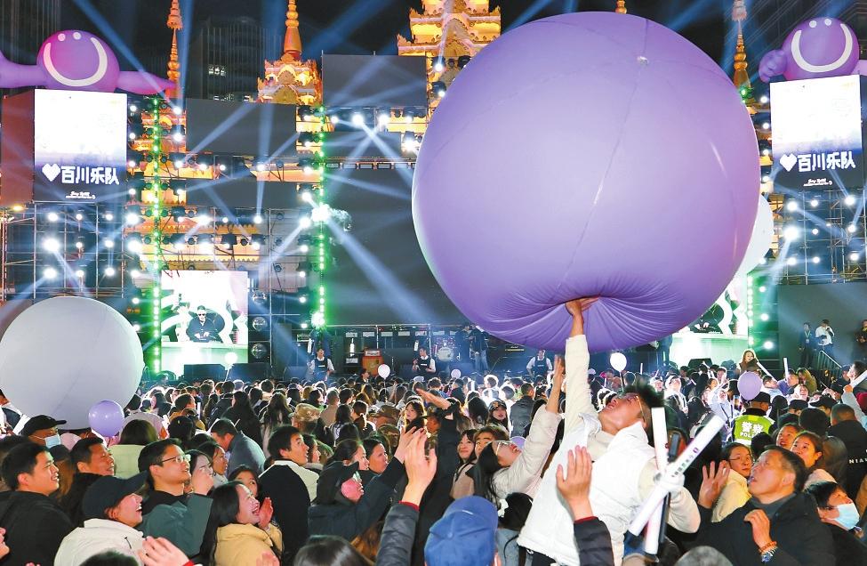 南亚风情第壹城“壹起摇摆”跨年音乐会上人头攒动。