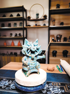 倪裳也是瓦猫技艺的传承人之一。据她介绍,呈贡瓦猫最大的制作特色是独有的“一体拉坯”绝技。这种技艺不同于拼接工艺,要求猫头猫身一次性拉坯成型,稍有不慎便会前功尽弃。在罗爱军的严格指导下,她将传统文化、民间美术融入创作,在制作传统瓦猫的同时,开发制作新派瓦猫、瓦猫茶具等新产品,推出后便得到市民认可。“前段时间参加上海市的一个文博会,我们的瓦猫受到各地行业专家的认可。带去的120多件瓦猫作品被抢购一空,苏州博物馆预订的瓦猫,我们在元旦期间才发货。”倪裳说。