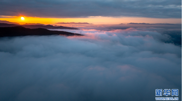 日出时分,阳光照耀云海(1月2日摄)。新华网发(刘东 摄)