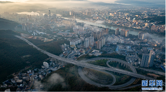 无人机视角下的景洪市区(1月2日摄)。新华网发(刘东 摄)