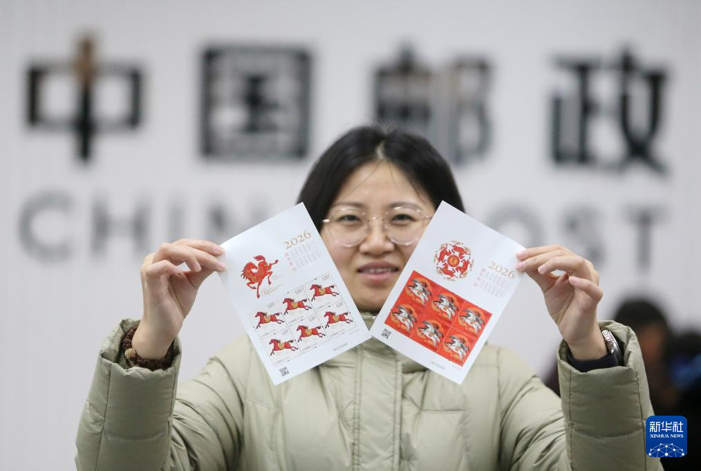 1月5日,中国邮政发行《丙午年》特种邮票一套2枚,面值均为1.2元,图案分别为“驰跃宏图”和“万骏臻福”。(新华社发 徐火炬摄)