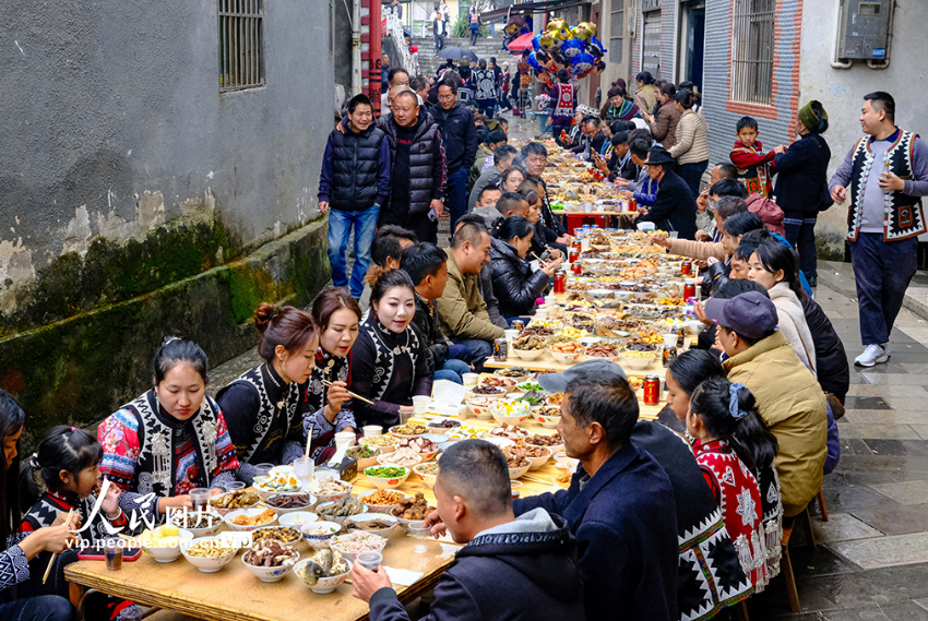 近年来,元阳县在持续加强保护与传承的基础上,积极推动长街宴与旅游产业融合,为当地乡村旅游注入新活力,实现社会效益与经济效益双提升。(人民图片网 张洪科摄)