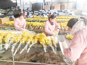 村民在包装大花蕙兰。 禄劝县融媒体中心供图