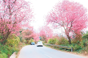 驱车穿行在茂山镇的盘山公路上,能看到粉霞般的花影与蜿蜒山路相映,勾勒出一幅“冬樱点乡途”的清新图景。大家纷纷放慢车速,沉醉在这份独属于冬日山间的浪漫与祥和里。
