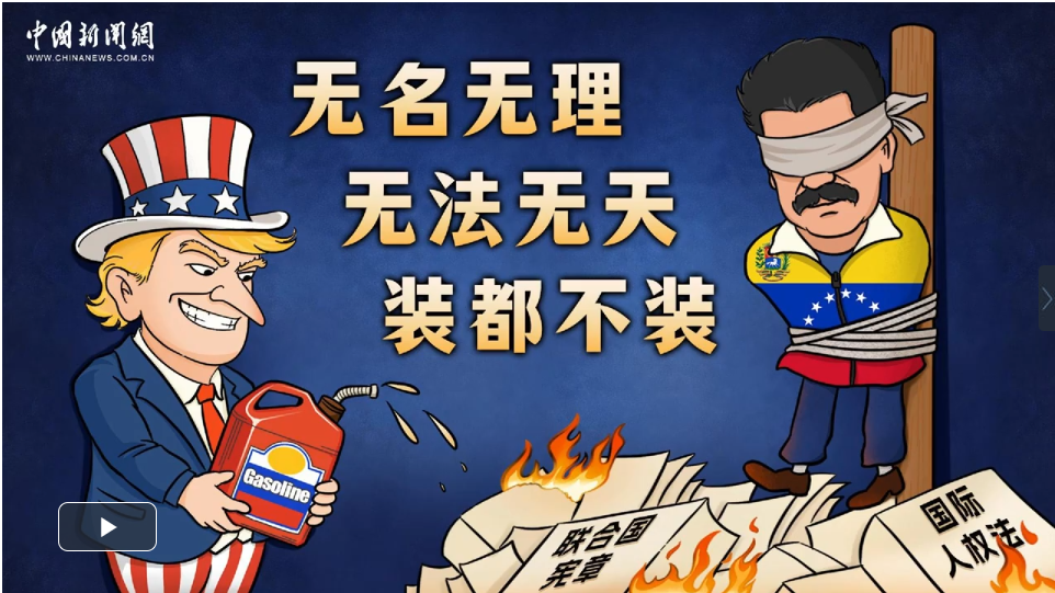美国派兵强行控制委内瑞拉总统马杜罗夫妇并移送出境,更扬言美国将“管理”委内瑞拉并进行“整顿”。难道仗着自己是一个大国,就可以霸道横行,以武力肆意入侵他国?泼向《联合国宪章》和《国际人权法》的,不是汽油,而是强权政治的傲慢与野蛮。无名无理,无法无天,这样的霸权行径,必将遭到历史的谴责与唾弃!