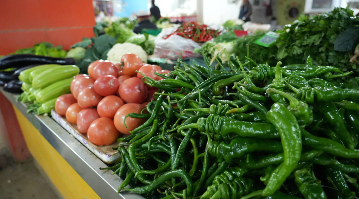 在北门街农贸市场,各类蔬菜琳琅满目,其中瓜果类与茄果类蔬菜被整齐摆放在摊位显眼位置。摊主们普遍反映,受季节变化影响,本地应季瓜果类和茄果类蔬菜已基本断供,目前市场上销售的此类蔬菜多从外地调运。由于运输成本上升及冬季产量减少,这些蔬菜价格较前期明显上涨,与2025年同期相比也有较大幅度提升,其中番茄、辣椒成为今年蔬菜价格涨幅的“领头羊”。