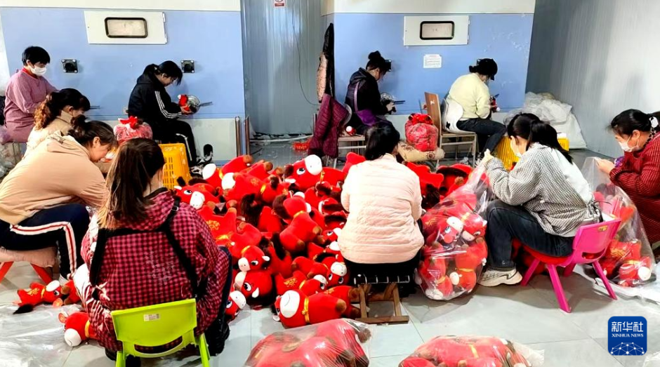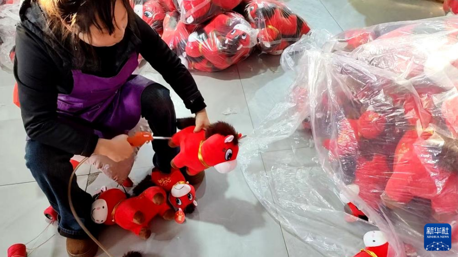 1月12日,在位于山东的生产车间,工人忙着生产“哭哭马”小马公仔玩具。