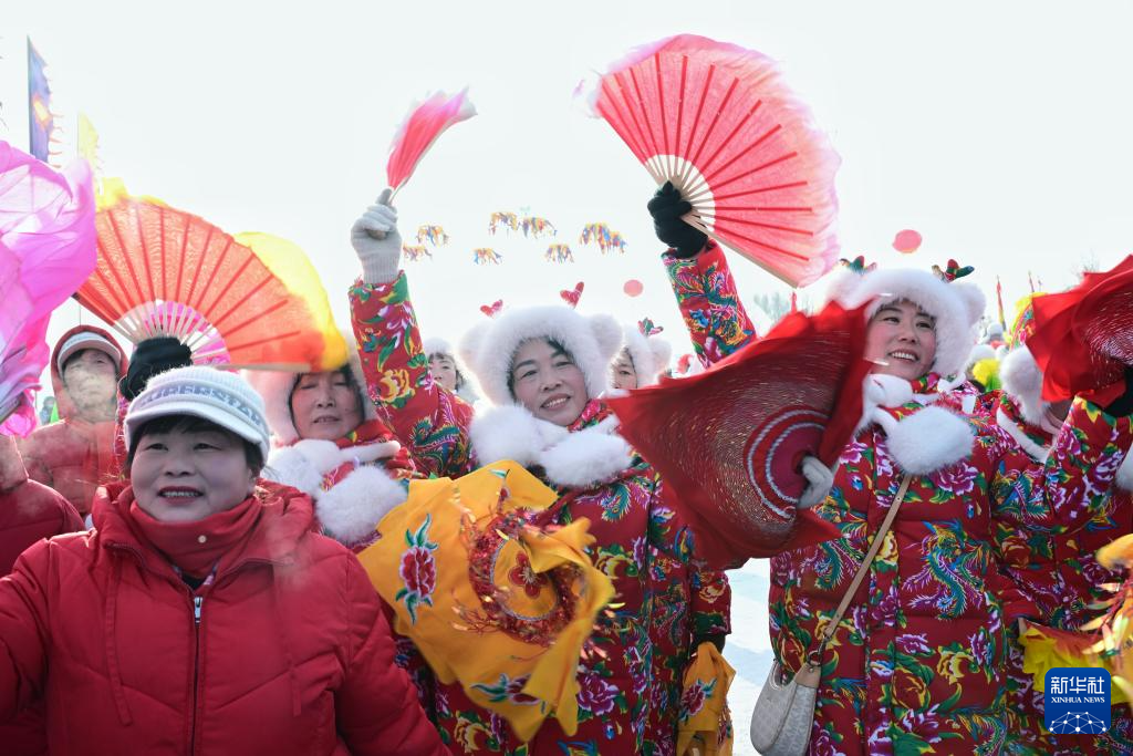 1月10日,黑龙江省肇东市举行大似海冬捕渔猎文化节,来自天南地北的游客在冬捕活动现场观看冰窟捕鱼,欣赏民俗歌舞,尽享北国风情。(新华社发 杨威摄)