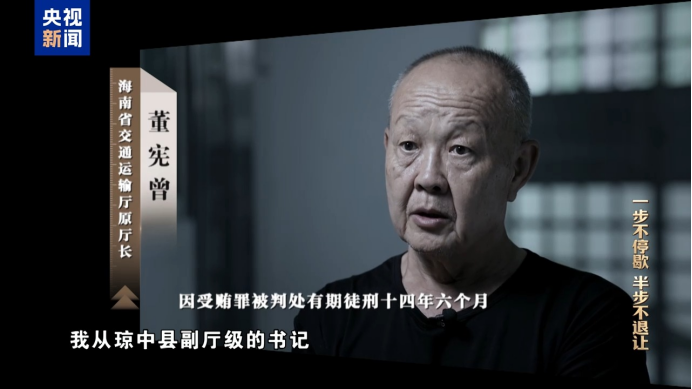 由中央纪委国家监委宣传部与中央广播电视总台央视联合摄制的电视专题片《一步不停歇 半步不退让》,1月12日在总台央视综合频道晚8点档播出第二集《严惩政商勾连腐败》,央视新闻新媒体平台同步播发。