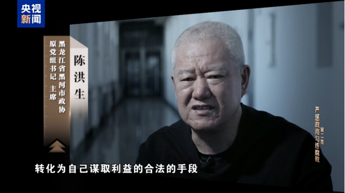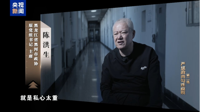 黑龙江省黑河市政协原党组书记、主席 陈洪生:其实现在回想起来,就是既想当官还想发财,就是私心太重,私心演变成私欲,最后欲壑难填。