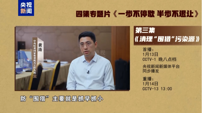 电视专题片《一步不停歇 半步不退让》第三集《清理“围猎”污染源》,讲述纪检监察机关坚决贯彻落实党中央决策部署,针对“围猎”乱象强化全链条惩治,从源头着力、向治本深化,多措并举,破除“围猎”与甘于被“围猎”的利益链,推动实现腐败问题的标本兼治。总台央视综合频道1月13日晚8点档播出,央视新闻新媒体平台同步播发。