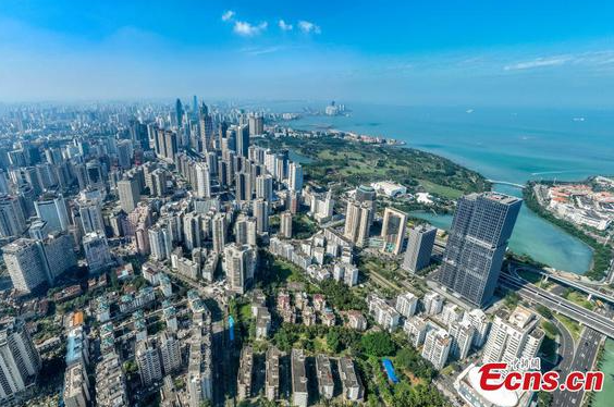 Photo taken on Dec. 17, 2025 shows buildings along Binhai Avenue in Haikou City, Hainan Province. (Photo: China News Service/Luo Yunfei)