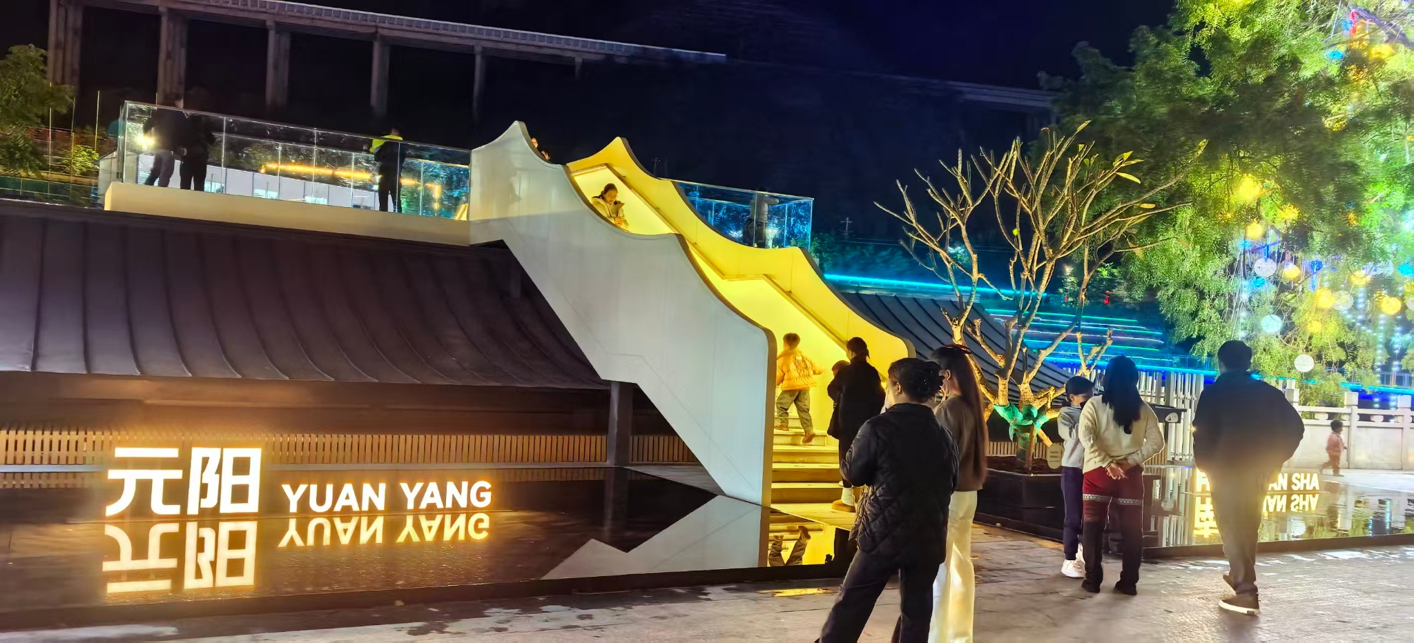 傍晚时分,彩灯亮起,步道如一条灵动的绸带蜿蜒在水岸之间:跑步爱好者挥洒汗水,家庭组团小憩闲谈,游客举着手机定格美景。林阿姨就是慕名而来的游客之一:“网上看到照片就心动了,来了才发现比图片更漂亮,不愧是大家推荐的打卡点。”这些鲜活的场景,共同勾勒出元阳最真实的人间烟火。