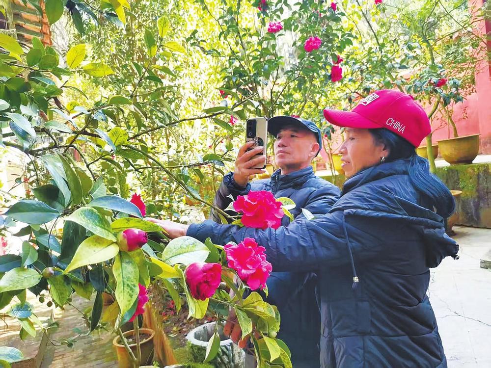 步入茶花园,宛如踏入一幅流动的彩墨画卷。一株株、一盆盆山茶姿态万千:有的含苞欲放,蕴藏无限生机;有的全然怒放,尽显雍容华贵。红若丹霞流彩,粉似少女颊晕,白如初雪映光。朵朵茶花风姿绰约,与园中亭台楼阁、曲径回廊相映成趣,步步皆景,处处成画。(春城晚报 记者李春丽 通讯员朱雁飞 吴文汝 摄影报道)