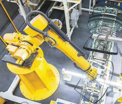 福清福耀绿色智慧工厂汽车玻璃生产线一角。 |