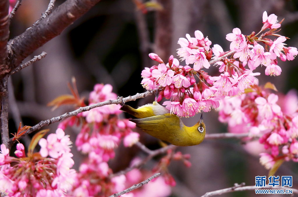 近日,云南省文山壮族苗族自治州丘北县八道哨彝族乡白脸山村的冬樱花悄然绽放。一簇簇粉红花团随风摇曳,引得鸟儿翩跹而至,或穿梭树梢,或驻足花丛,灵动雀跃的身影与烂漫樱景相映成趣,勾勒出一幅生机盎然的冬日画卷。(新华网 作者马卫忠)