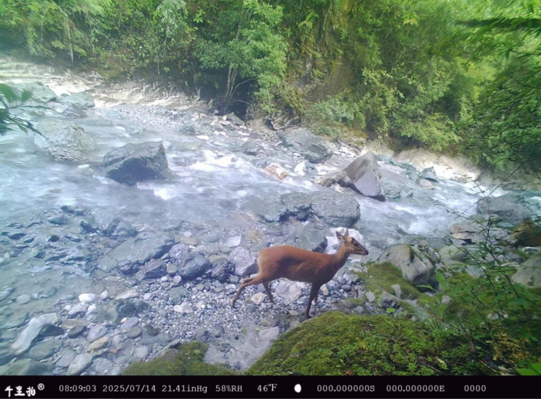红外相机拍摄到的赤麂。(丽江玉龙雪山省级自然保护区管护局 供图)