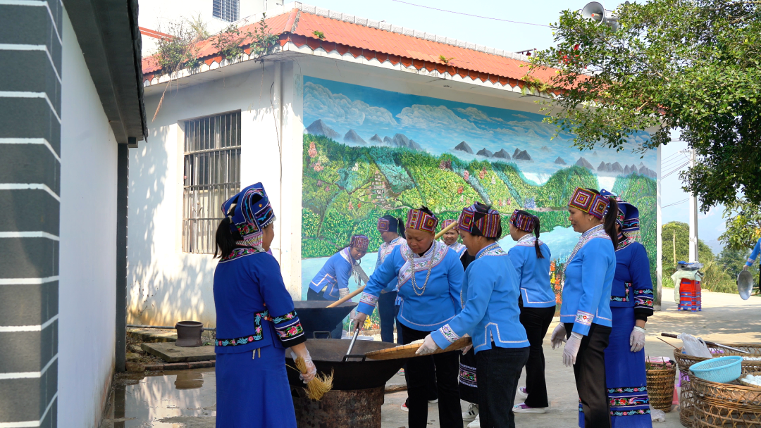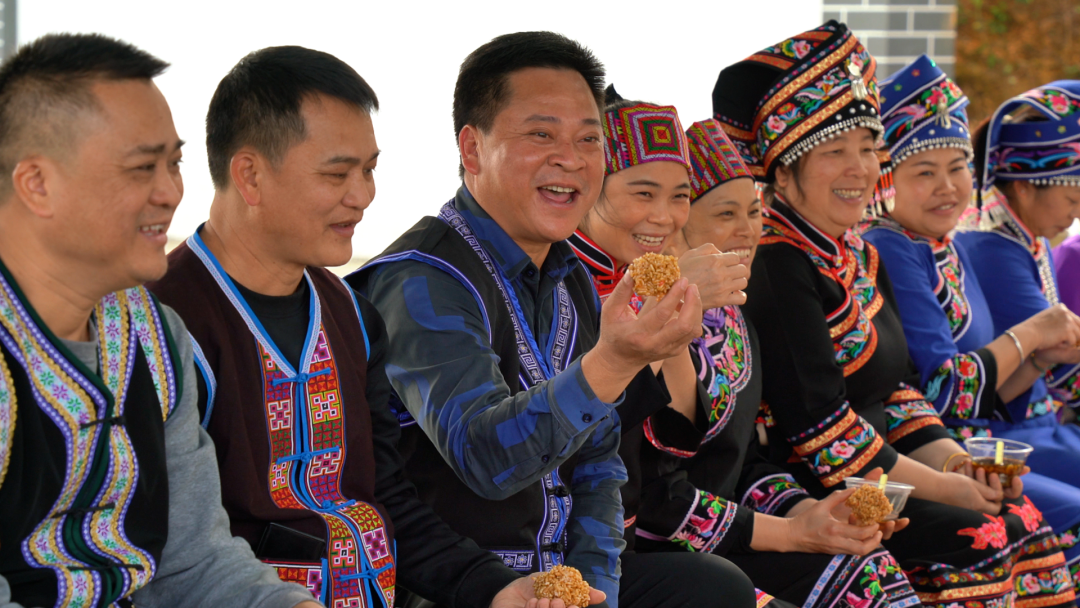 美食上桌,妇女们围坐成圈,手中捧着刚做好的米花,耳畔响起悠扬婉转的山歌。清甜的米香混合着醇厚的蔗香在口中化开,歌声里是对丰收的喜悦、是对新年的期盼。“每年过年都要做米花,这是刻在骨子里的年味。红糖甜,生活更甜!”一位村民笑着说道。