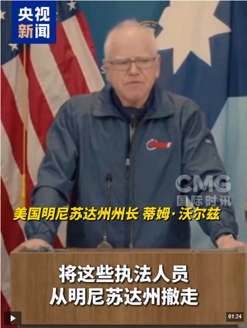 明尼苏达州州长蒂姆·沃尔兹和民主党籍参议员埃米·克洛布彻则强烈要求移民与海关执法局人员离开明尼苏达州。他们指出,联邦执法人员的存在只会让社区更加不安全。