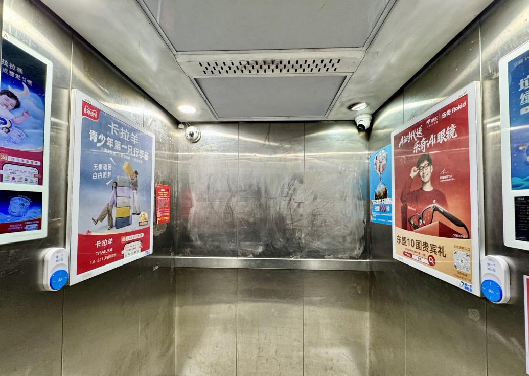 北京某小区电梯轿厢广告。新华网发(受访者供图)