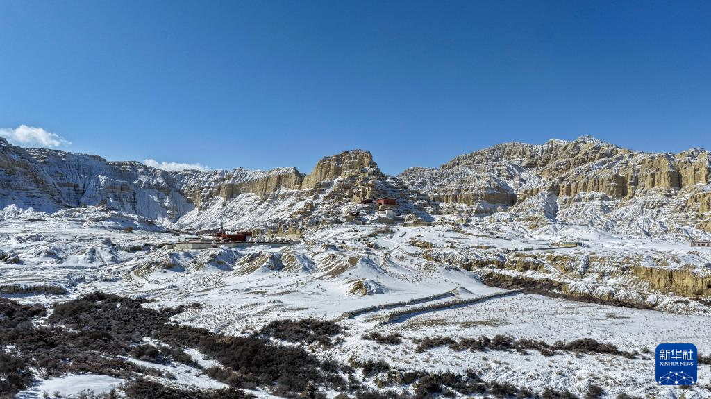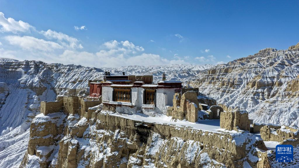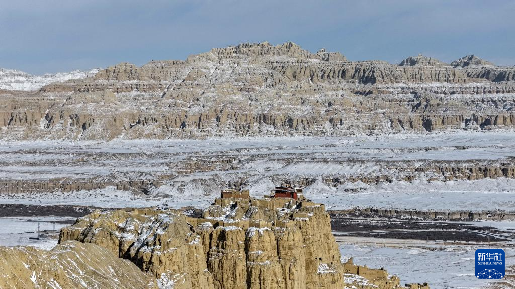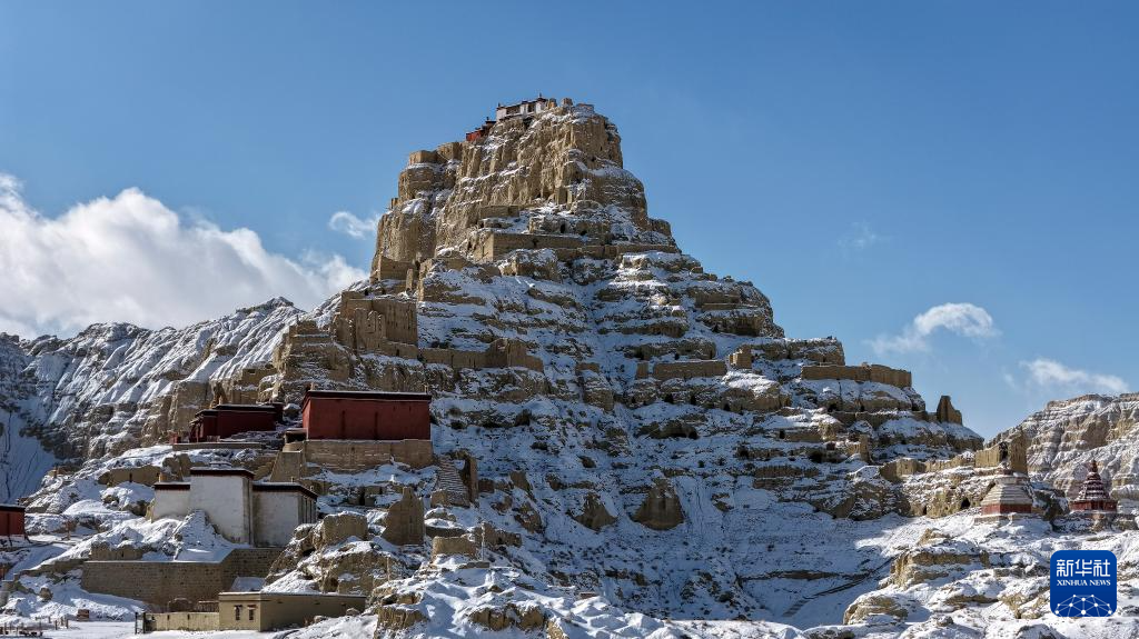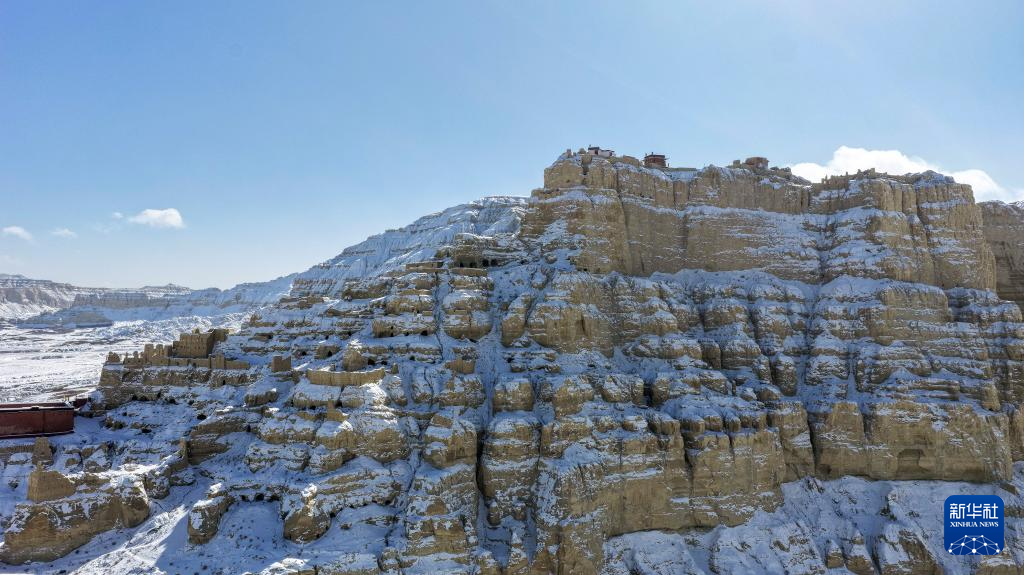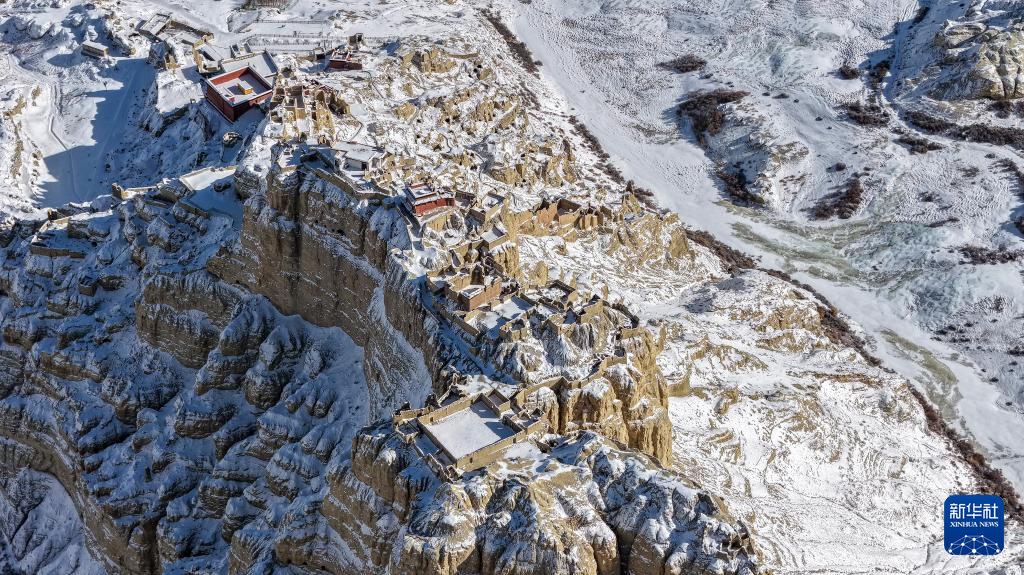1月24日,西藏阿里地区札达县迎来降雪,全国重点文物保护单位古格王国遗址披上银装,呈现壮美雪景。(新华社 旦真次旦摄)