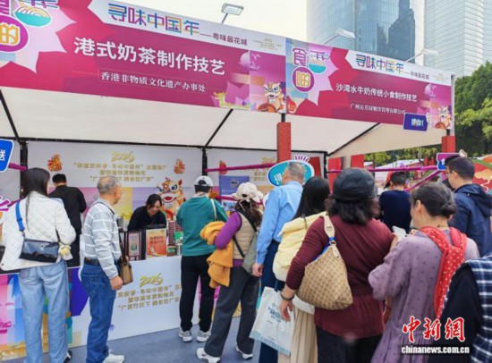 1月26日,2026年“非遗贺新春·寻味中国年”主题推广暨非遗年货购物月在广州市启动,图为民众在港式奶茶摊位前排长队。 中新社记者 应妮 摄