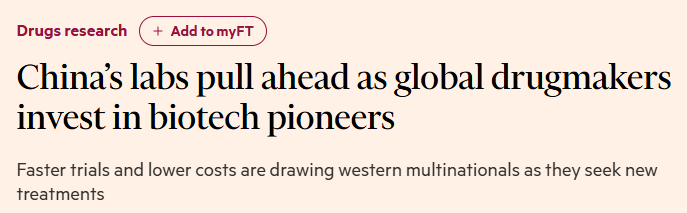 近日,英国《金融时报》刊文指出,中国正凭借更快的研发速度和成本优势,在早期药物研发领域逐渐取得领先地位,吸引了全球制药企业的投资与合作。文章认为,中国生物技术的崛起趋势不可逆转,全球合作与竞争并存的局面将推动整个行业向更高效、创新的方向发展。