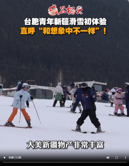 1月24日,全国台联第三十二届台胞青年冬令营新疆分营的23名台胞青年,走进丝绸之路山地度假区,在沉浸式体验中,感受冰雪运动的独特魅力。台胞青年们在专业滑雪教练指导下安全畅快滑雪,他们表示新疆与想象不同,发展迅速,尤其喜爱当地美食与历史文化,希望更多台湾民众前来亲身感受,促进两岸交流。