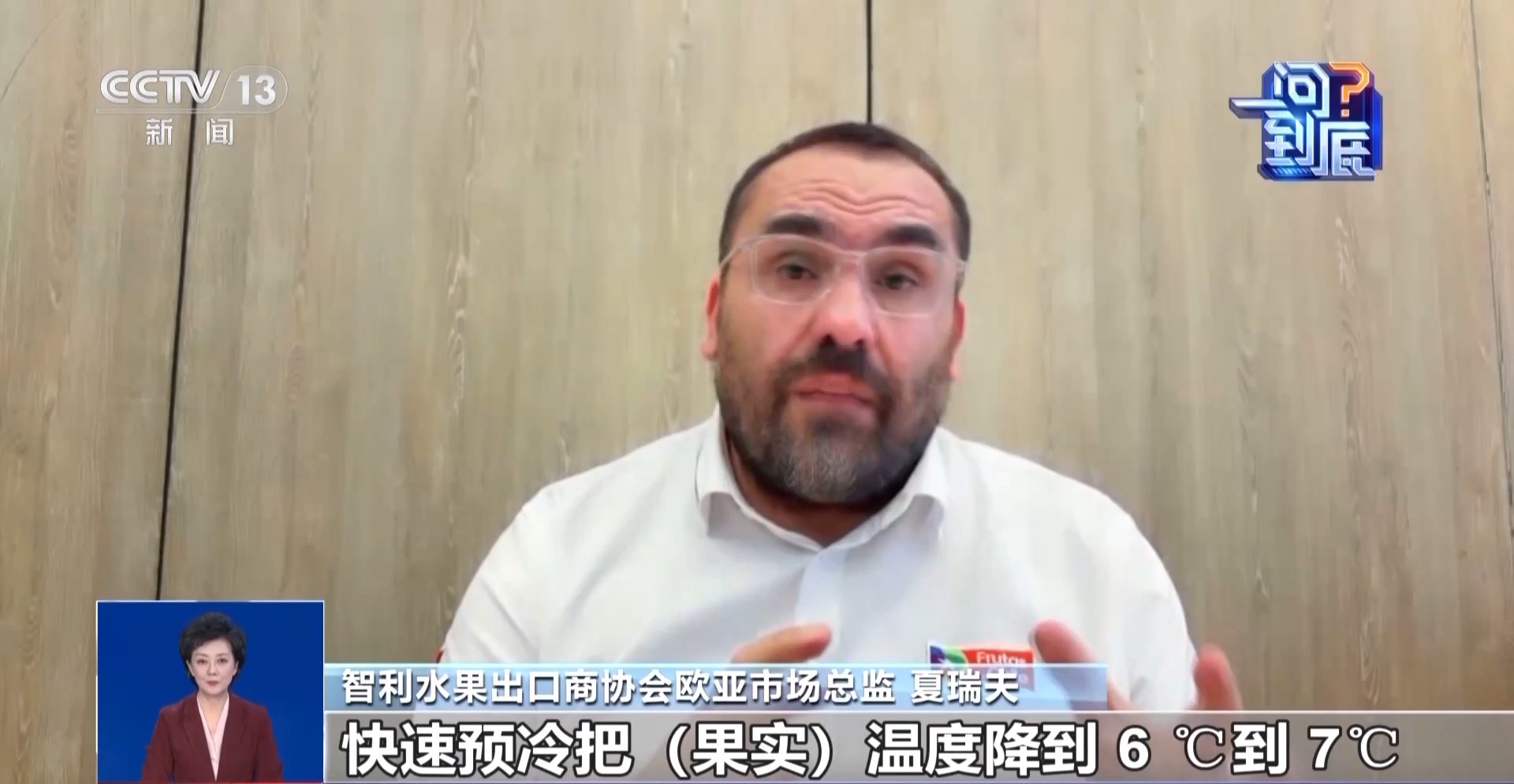 智利水果出口商协会欧亚市场总监 夏瑞夫:快速预冷把温度降到6℃到7℃。根据大小、颜色分选后,再进一步降温到0℃到2℃,之后就一直保持这个温度直到抵达中国。所以到了之后依然脆、新鲜。