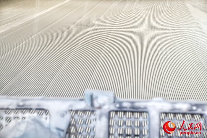 压雪机刻出的“面条雪”。人民网记者李洋摄