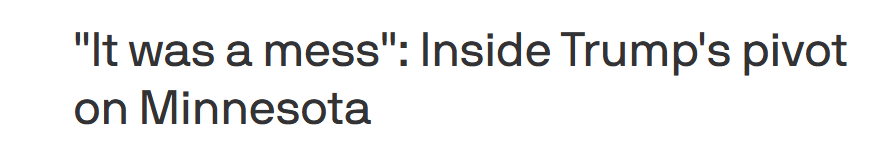 美国阿克西奥斯新闻网27日报道称,本月早些时候,特朗普总统调集了移民执法力量进入明尼苏达州并宣称要进行“清算和惩罚”。现在他在言辞上似乎出现退让。