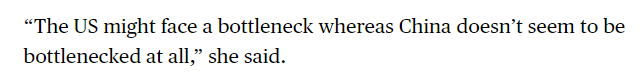 文章说,中国的能源建设速度无与伦比。过去四年,中国新增的发电容量超过了整个美国电力系统的总和。这种大规模能源基础设施投资帮助中国降低对化石燃料依赖,为人工智能数据中心等高耗能技术提供稳定电力供应,从而在全球科技竞争中获得显著优势。