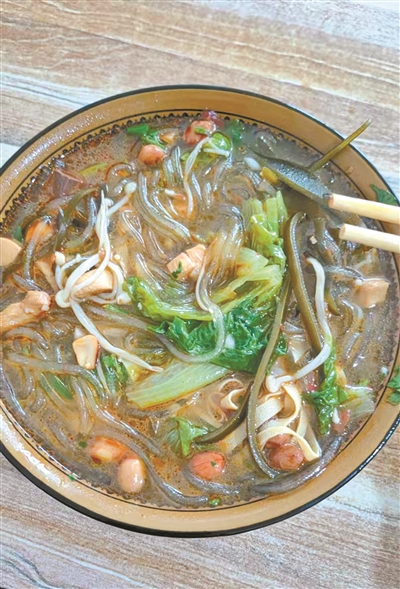 这家店的氛围也如它的店名般接地气,面积不大,只有六七张桌子。用餐高峰时,工人、阿姨、学生自然地拼桌坐在一起。店主是一对胖胖的、笑容憨厚的夫妻,见到燕婷进店会亲切地问候:“今天没课啦?”小店的好处是,老板会记得熟客的习惯,能把大家都照料周全,甚至会给独自吃饭看剧的顾客递上一个手机支架。当然,比麻辣烫更“香”的还有价格。燕婷称自己现在还是学生,“十元钱出头就能吃得很满足,物有所值”。