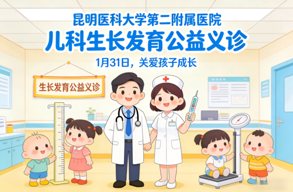 寒假是儿童生长发育监测与干预的黄金窗口期,部分家长因对发育规律认知不足,易错过最佳干预时机。为深入贯彻2026年全国卫生健康工作会议精神,落实卫健系统为民服务十件实事中“儿科服务扩容提质”要求,扎实推进医院“儿科服务年”行动部署,提升公众对儿童生长发育的认知,昆明医科大学第二附属医院儿科将开展寒假期间生长发育公益义诊活动。