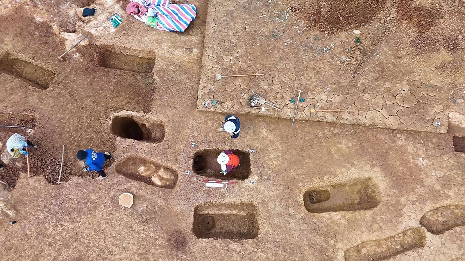 近日,云南红河哈尼族彝族自治州弥勒市西三镇散坡村的一处青铜时代墓地完成考古发掘,共清理墓葬50余座,出土青铜器、陶器等各类文物300余件(套)。该墓地的发现为研究云南地区青铜时代文化面貌及冶铸活动提供了新的实物资料。