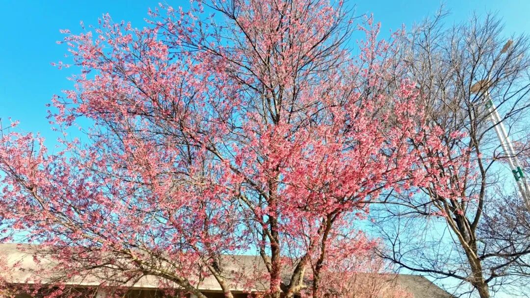 驶入八街樱花大道,冬樱花已褪去了盛放时的浓烈,转而多了几分剔透轻柔的韵味。几只蜜蜂流连于花枝间,嗡嗡采蜜,为这份静谧的美好增添了几分灵动气息。微风拂过,粉瓣簌簌飘落,铺洒成一场绵长的花雨,成了冬日里最温柔的告别。