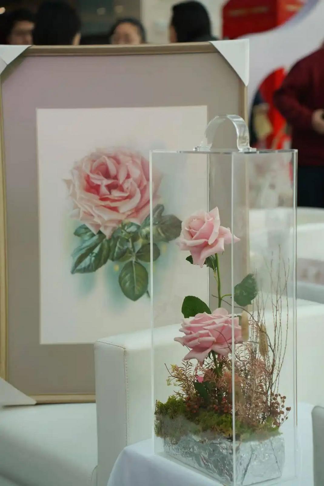 “娇龙”月季被安放在一个透明的亚克力定制护运盒中