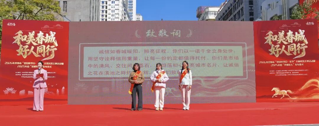 春城昆明,暖意正浓。2月6日下午,2026年“我们的节日·春节”文明实践主题活动暨2025年度“昆明好人”发布仪式在南屏步行街广场举行。活动通过深情的致敬发布与精彩的文艺演出,礼赞凡人善举,弘扬美德力量,为新春佳节增添了浓厚的文明色彩。