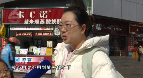游客:“就不用买不用到处去找水了,带个杯子放在身上然后就直接可以接到,这样是比较好的。”