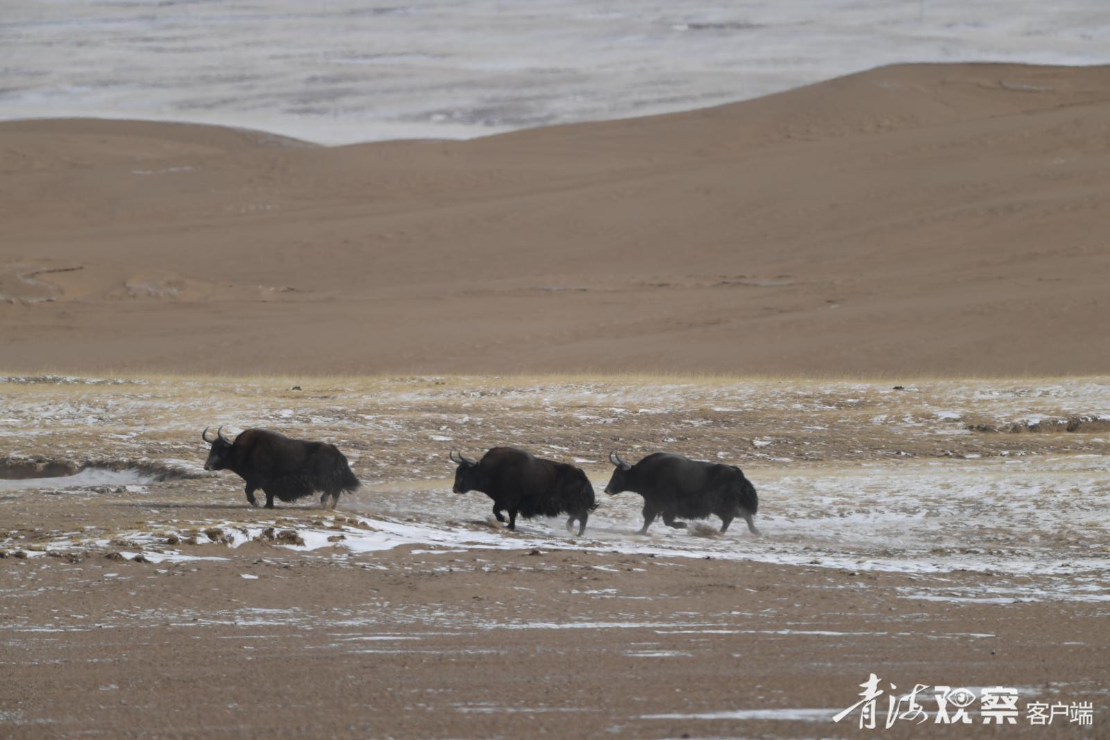 这一路遇到的野牦牛之多,连巡山队员都觉得意外:“这个季节它们通常该在海拔更低、更暖和的公路沿线或牧民冬季牧场附近。现在跑到近5000米的高山草场,可能是山下雪太厚,找不到草吃了。”