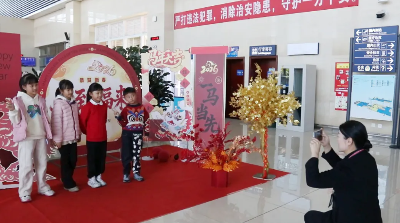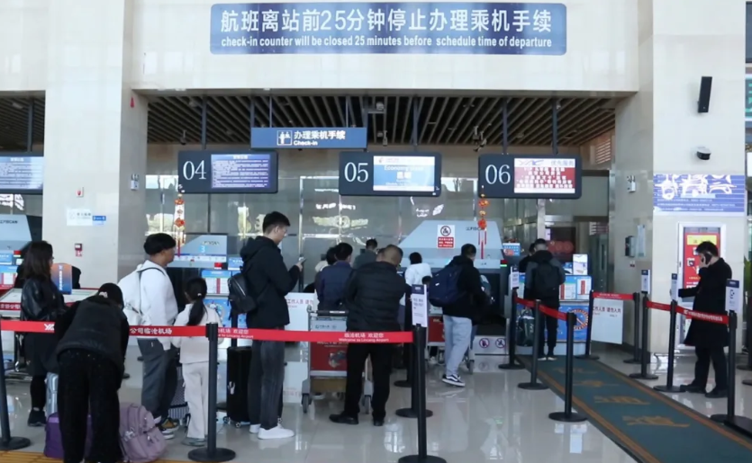 临沧博尚机场在保障检票、托运、安检等核心环节高效运转的同时,精心布置打卡点、悬挂红灯笼、张贴祝福语,将候机大厅装点得喜庆祥和。