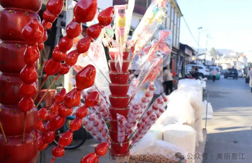 糖果摊前是最热闹的所在,花花绿绿的糖果、酥香的糕点、饱满的干果,被整齐码放在待售的台面上,甜香混着坚果的醇厚,在空气里酿出温柔的暖意。