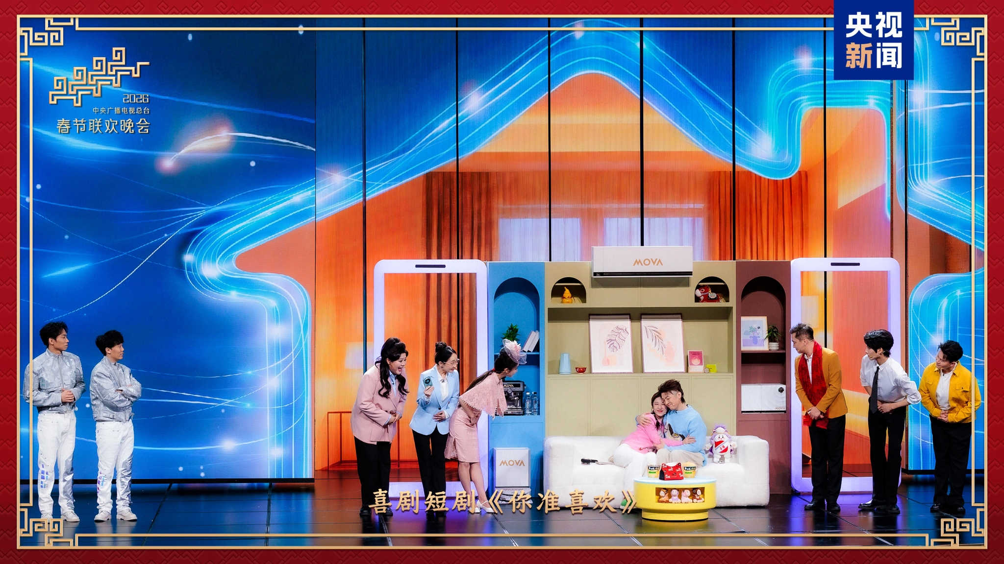 蔡明与王天放带来小品《奶奶的最爱》,聚焦机器人融入家庭生活场景,笑声与误会交织中藏着祖孙间最真挚的爱与惦念。喜剧短剧《你准喜欢》用轻松诙谐的方式演绎数字时代“越刷越上头”的状态,引发对社交媒体产品“有意思”和“有意义”的思考。