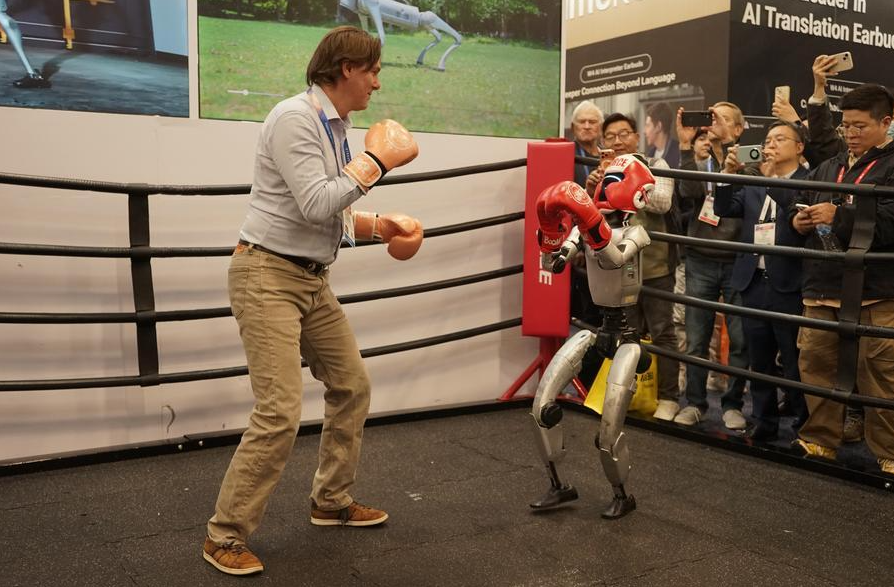 While others showcased physical prowess, Beijing-based Galbot demonstrated its aptitude for performing everyday tasks, from delicately cracking walnuts, picking up glass shards and retrieving items from shelves to folding clothes and skewering sausages for grilling.