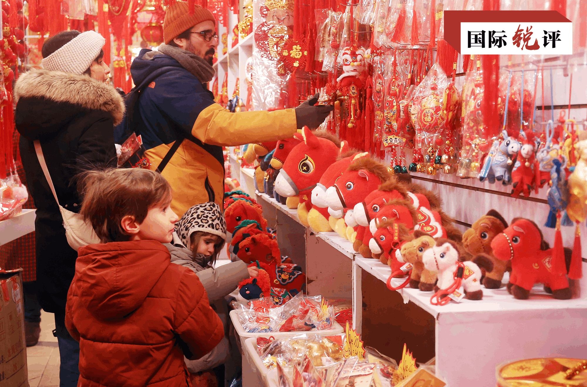 作为中国文化的“超级IP”,春节正在很大程度上引领着国际时尚。马年春节,一款“哭哭马”毛绒玩具意外走红,成为人们争相采购的吉祥物,南非、西班牙、俄罗斯等国的订单纷至沓来。在中国浙江义乌的快闪店,展示义乌“六义”文化的织锦包、印有唐代诗歌的红包、“春碗”套装等潮品吸引不少外国商人和游客驻足。美国《环游世界》杂志刊文称,快闪店让人沉浸在中国文化中,为游客提供了传统与现代交融的体验。