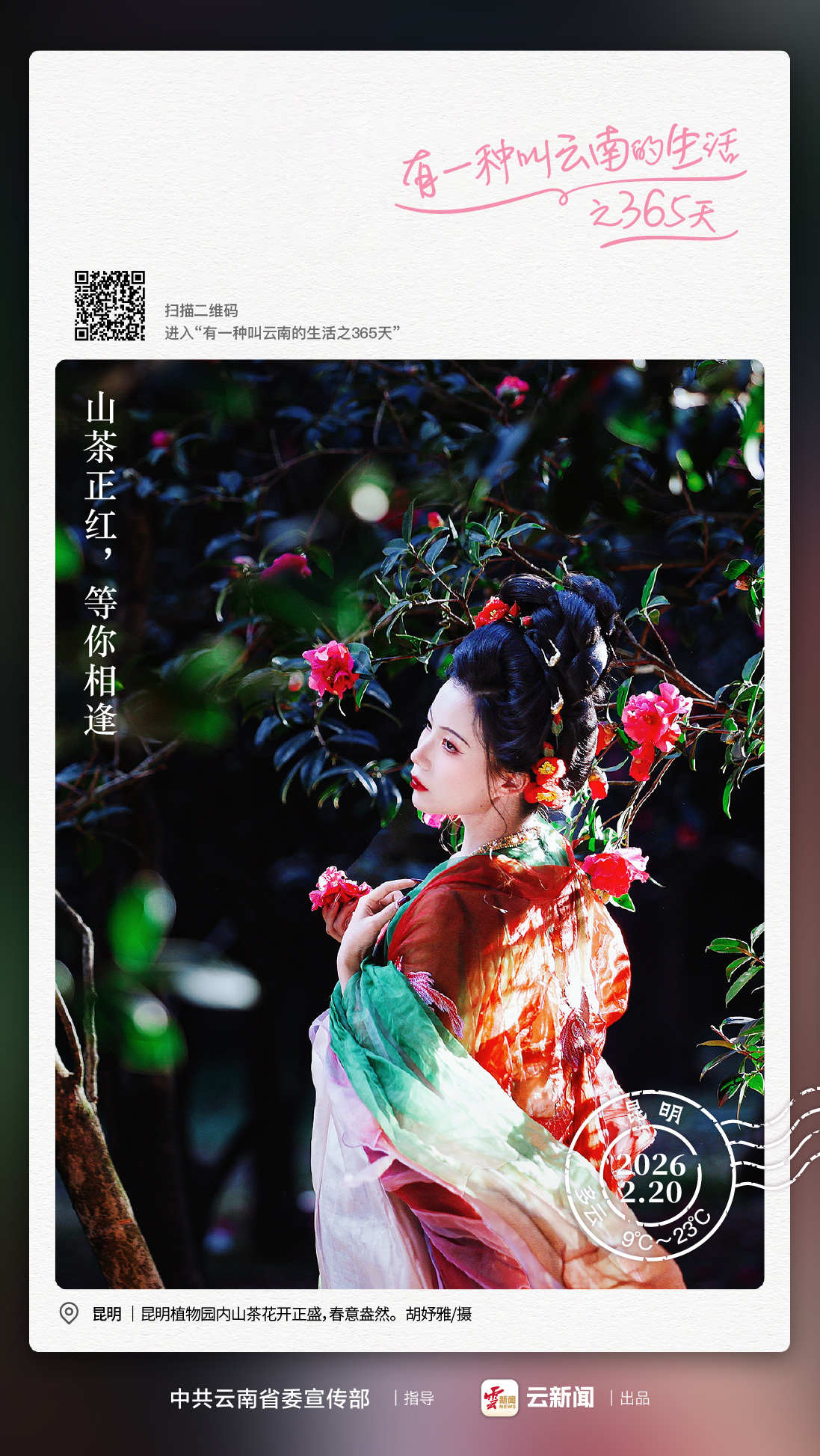 正月初四,年味正酣。在这个迎祥纳福的日子里,云南省昆明植物园的山茶花如约绽放,为春城添上了一抹醉人的绯红。