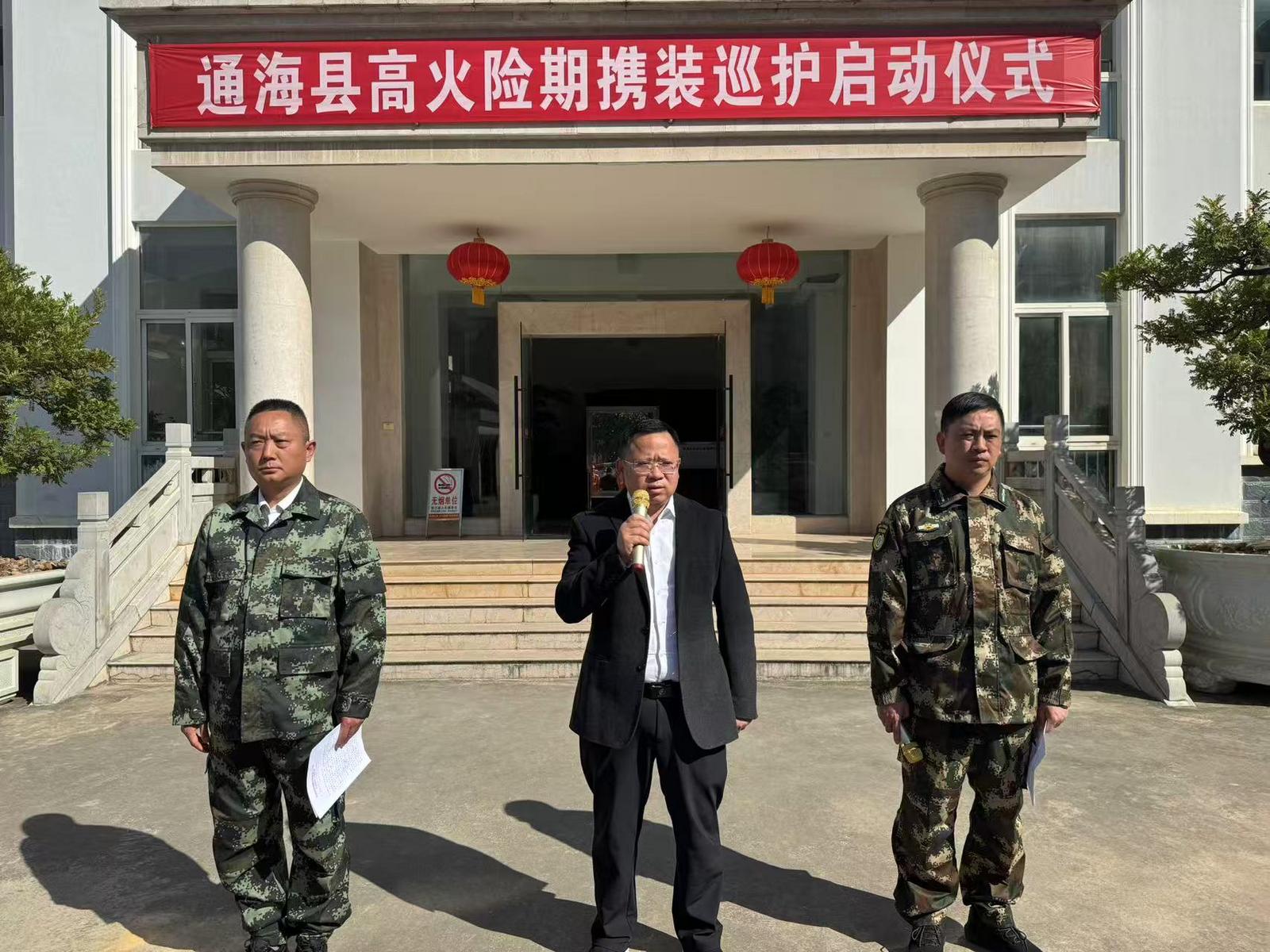“今年由于全县防火形势严峻,我们提前进入了高火险期,从今天开始,我们开展了集中携装行动,每天都有队伍在巡查、在巡护,请大家积极宣传,不要违规野外用火,如果遇到违规用火,我们将严惩。”通海县林业和草原局副局长普从伟说。